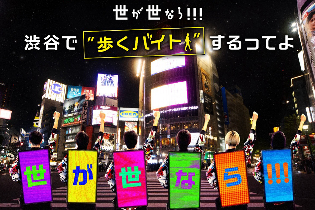 若者に人気の6人組グループ「世が世なら!!!」が、2nd EP『2025!!!』の発売前夜となる10月28日(火)に、渋谷で前代未聞の“歩く広告”バイトを実施!